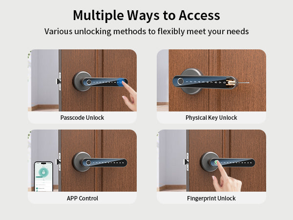 - Versatile Unlocking Methods: Integrates 4 unlocking methods including fingerprint, password, key, and smart app, catering to various user preferences and providing ease of access with both traditional and modern biometric technologies