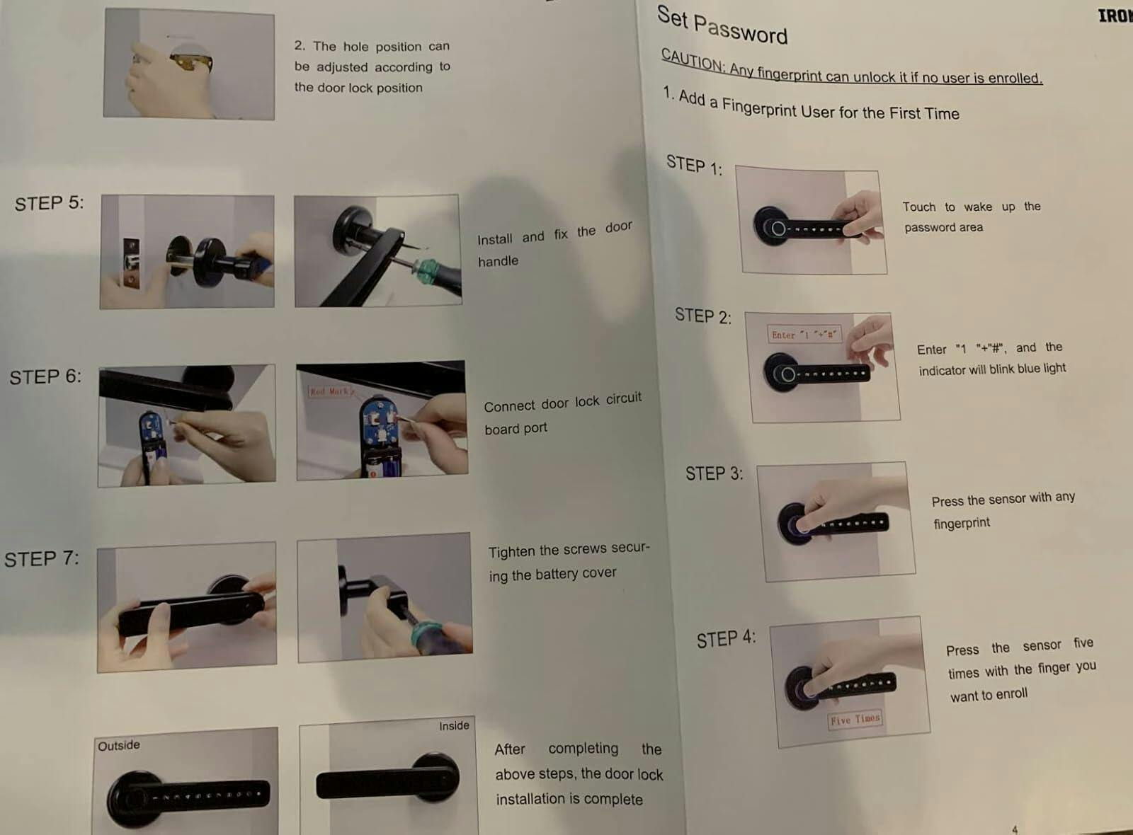 - EASY INSTALLATION: Fingerprint door lock is designed to fit US standard door, Backset 2-3/8″(60 mm) and 2-1/8″(70 mm), door thicknesses from 1-3/8'' to 2-1/8''(35 mm -55 mm). No wiring and no drilling; Fit both left handed and right handed doors.